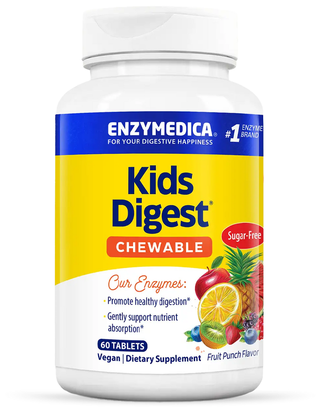 Kids Digest содержит пищеварительные ферменты, которые помогают организму расщеплять такие компоненты пищи, как жиры, клетчатку, белки и углеводы. Ферменты имеют решающее значение для усвоения питательных веществ, а также могут уменьшить газообразование, вздутие живота и несварение вследствие употребления нездоровой пищи.