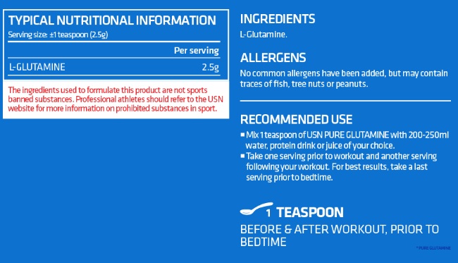 Pure Glutamine – это 100% чистый Глютамин в биодоступной порошковой форме. Никакого сахара, красителей или ароматизаторов. Продукт максимально безопасен и не вызывает побочных эффектов. Кроме того, он прост в использовании, быстро усваивается и имеет демократичную цену.