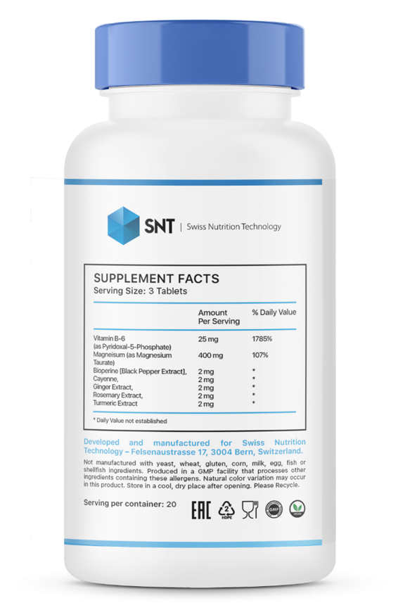Таурат магния - хелатная форма магния и аминокислоты таурина. Вместе они являются отличными помощниками в снижении кровяного давления и оказывают пользу для сердца.Magnesium Taurate разработан с соблюдением всех стандартов качества. Добавка состоит не только из этих двух полезных компонентов,но и включает в себя другие важные витамины и микроэлементы, такие, как: витамин В-6, экстракт черного перца, паприка, корень имбиря, экстракт розмарина и куркумин, которые в комплексе положительно влияют на весь организм. Магний таурат обеспечивает защитные функции мозгу, сердцу, глазам и даже мышцам. Этот комплекс помогает предотвратить аритмию и образование тромбов.
