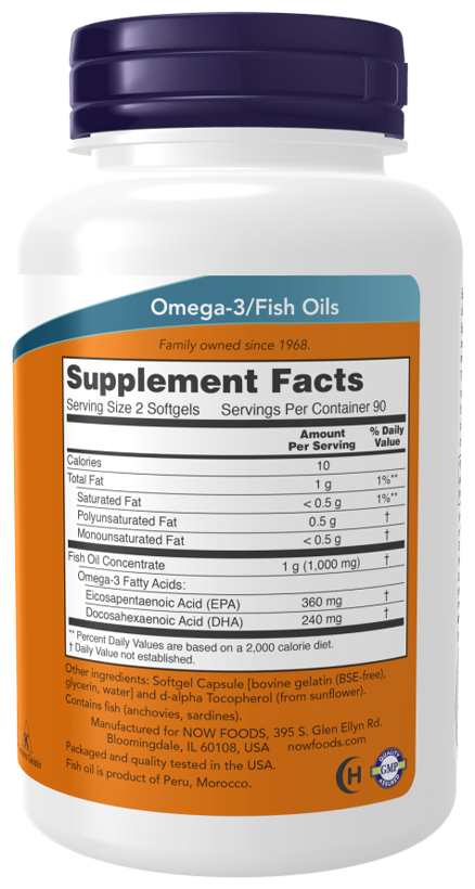 NOW Omega 3 Mini Gels 500 mg, 180 капсул