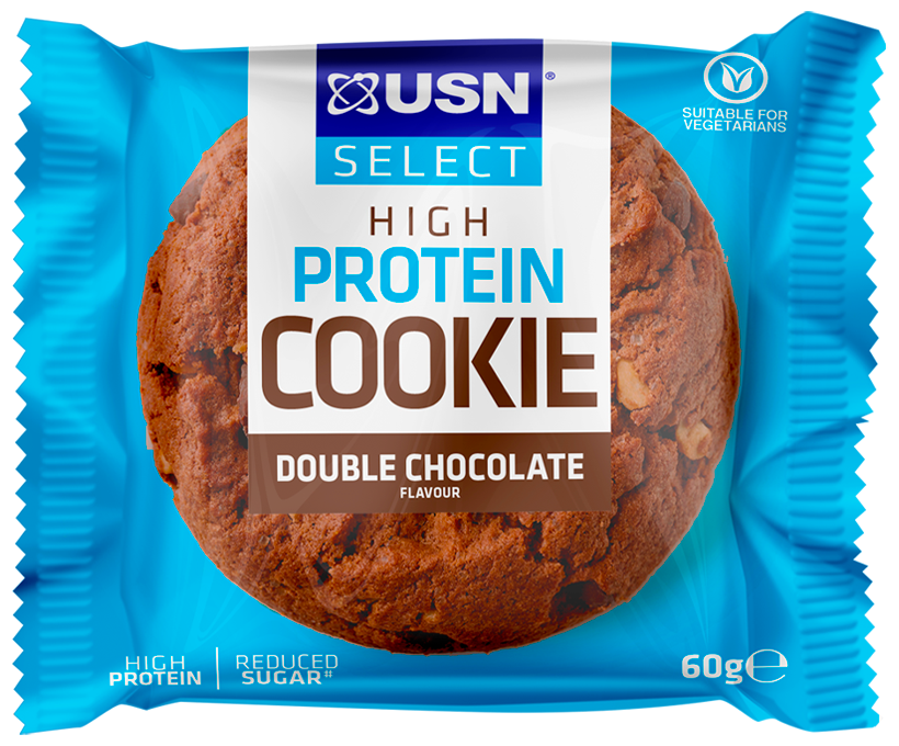 Протеиновое печенье Select High Protein Cookie от USN отличается превосходными вкусовыми качествами, мягкой текстурой и высоким содержанием белка. Основу этого печенья составляет молочный протеин, который является полноценным источником всех необходимых организму аминокислот. В каждом печенье весом 60 г содержится 14 граммов белка, а также 3 грамма клетчатки.
