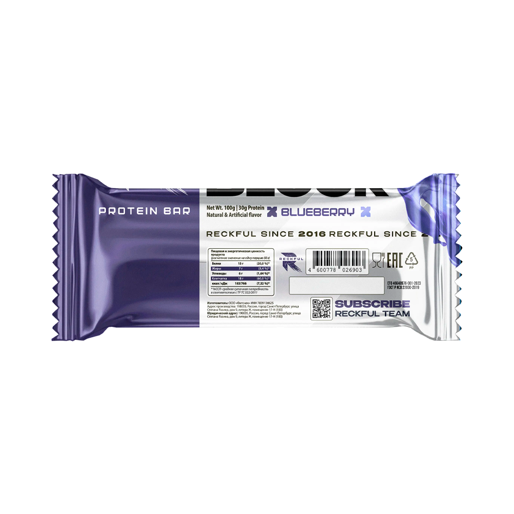 Протеиновый батончик Reckful Big Block, 100 грамм