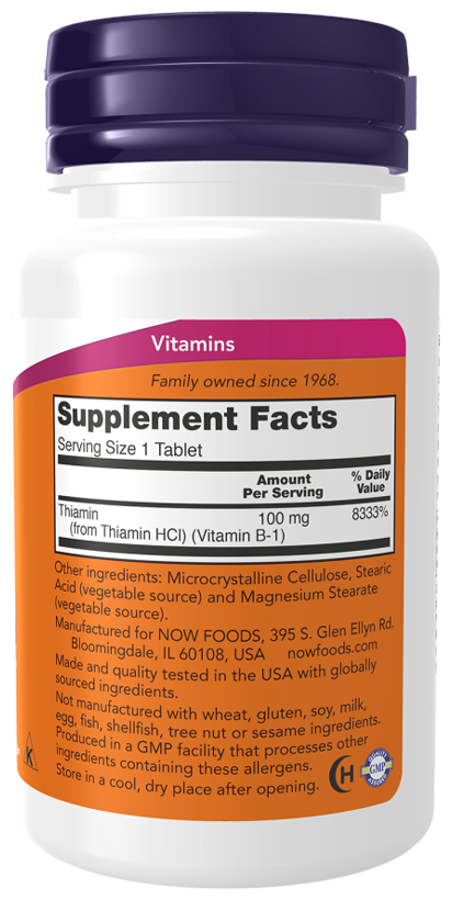 NOW Витамин В-1 (Тиамин), 100 таблеток