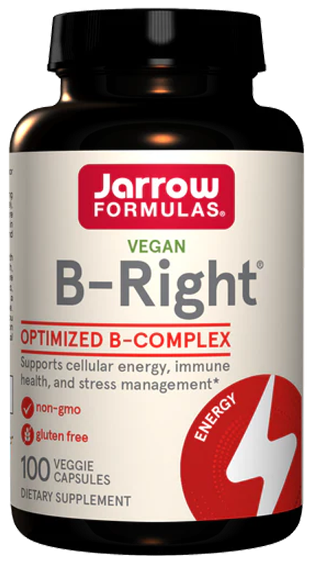 Jarrow Formulas B-Right - это оптимизированный комплекс витаминов группы B, включающий B1 (тиамин), B2 (рибофлавин), B5 (пантотенат), B6 (пиридоксин), B12 (метилкобаламин) и B9 (метилфолат). Эти витамины легко усваиваются организмом и играют ключевую роль в выработке энергии, поддержании иммунитета и снижении уровня стресса.