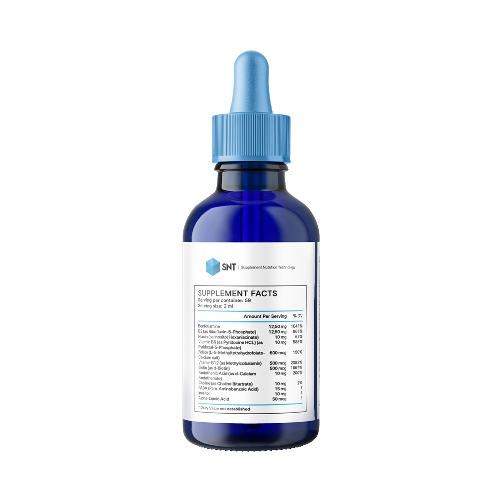SNT Liquid B Complex - это биологически активная добавка, представляющая комплекс витаминов группы B в удобной жидкой форме. Эти витамины играют ключевую роль в поддержке энергетического обмена, функционировании нервной системы, здоровье кожи и волос, а также общего самочувствия.Жидкая форма обеспечивает высокую биодоступность, позволяя организму быстрее и эффективнее усваивать витамины.