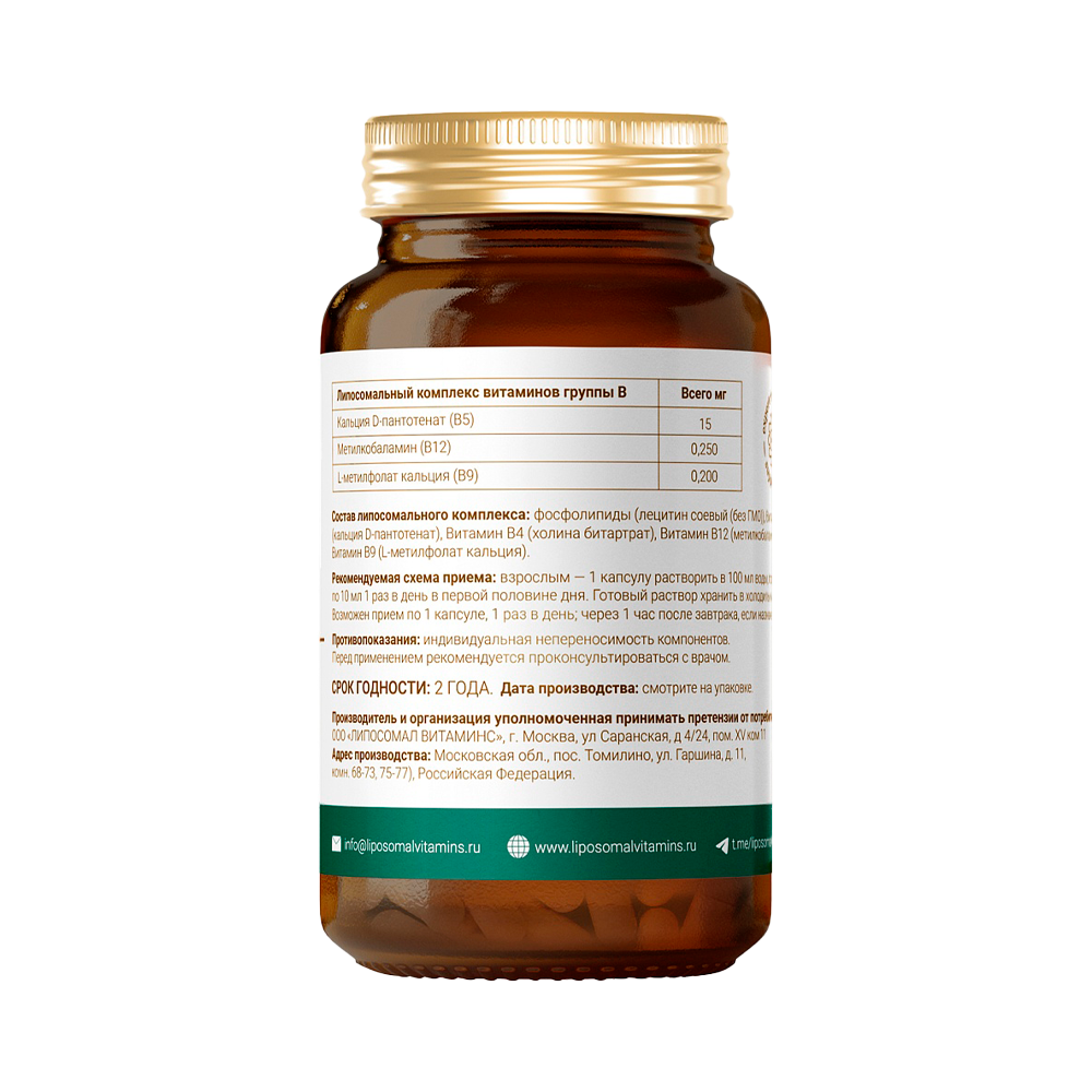 натуральный соевый лецитин (не ГМО), кальция D-пантотенат (B5), холина битартрат (B4), метилкобаламин (B12), L-метилфолат кальция (B9). |